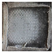 Visual inspections were conducted on the exposed surfaces of the protected and unprotected samples after fire tests. As shown in Figure 21, the Fireshield® veil burnt into a thin and white layer which, in the case of fibreglass glass face laminate, appeared to have protected the fibreglass reinforcement behind it from melting.